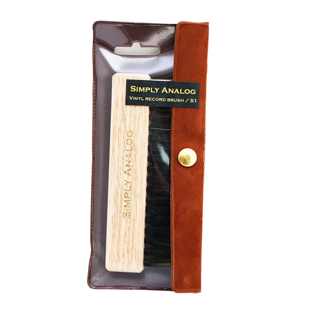Simply Analog anti-static record bush for records made from oak and natural goat hair.