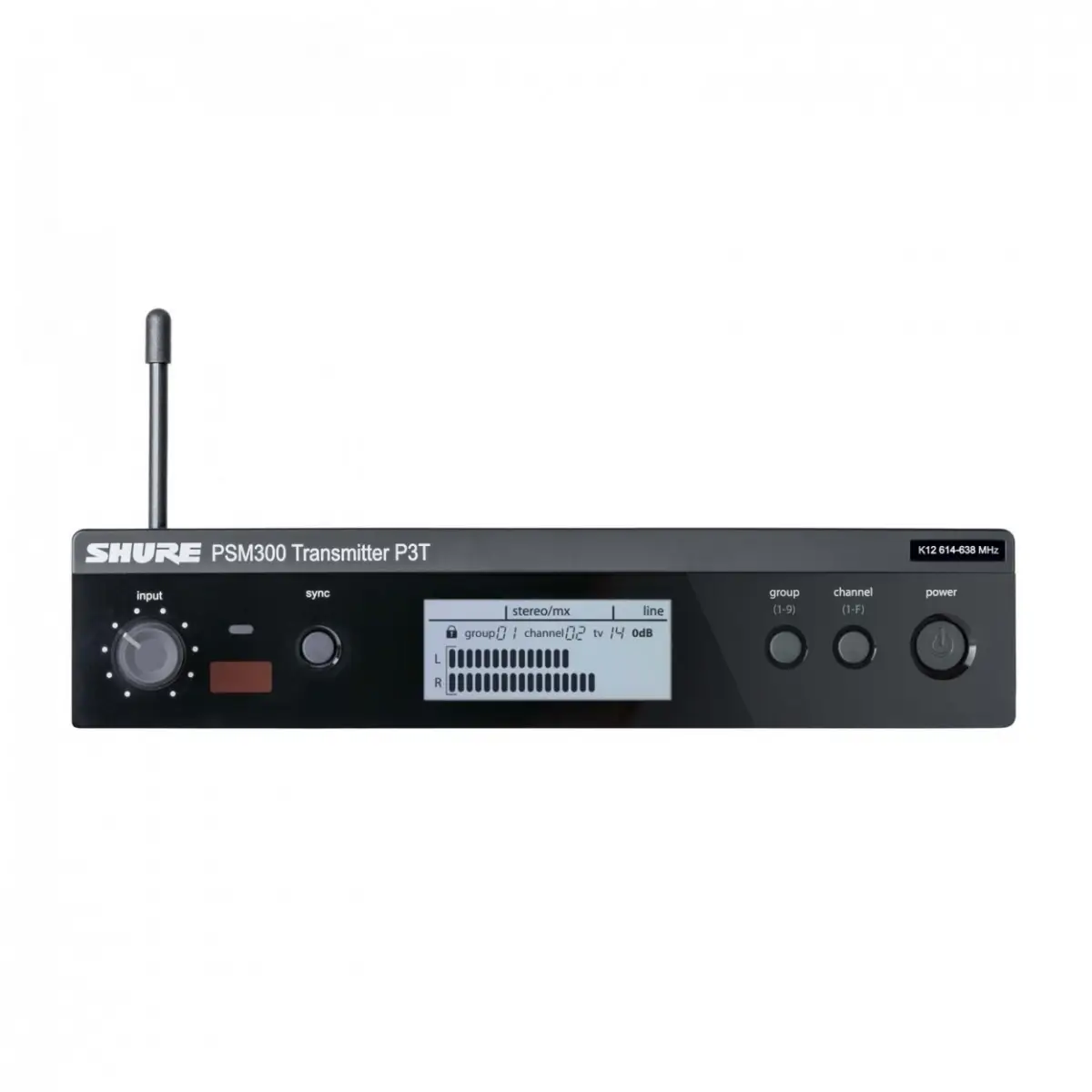 The Shure PSM300-K3E Wireless Transmitter is a reliable rackmountable transmitter for Shure's PSM300 wireless monitoring systems. The P3T transmits two channels of clear, 24-bit audio to bodypack receivers with a range of up to 91.44 m. Companding technology to reduce noise and prevent artifacts. The PSM300 Transmitter offers extremely reliable RF performance with absolutely no dropouts. One-touch sync and input level controls on the front panel of the P3T makes it fast and easy to setup and send audio to your bodypack immediately. Finally, on the rear panel, balanced inputs and loop outputs allow you to connect a wide range of audio sources and quickly chain other P3T units for multi-user monitoring setups.