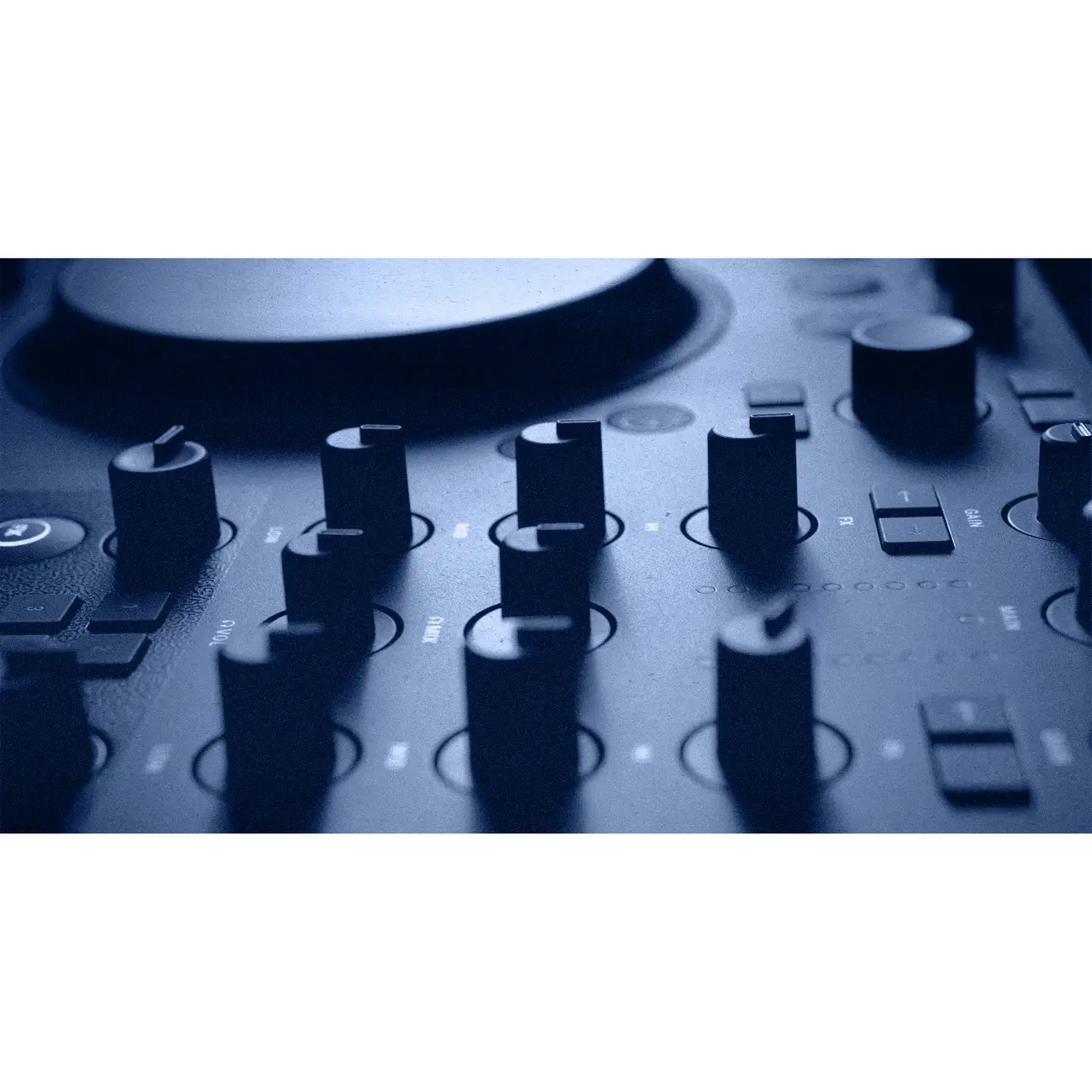 - Club-standard mixer layout with channel faders, volume meters, a crossfader, and 3-band EQ