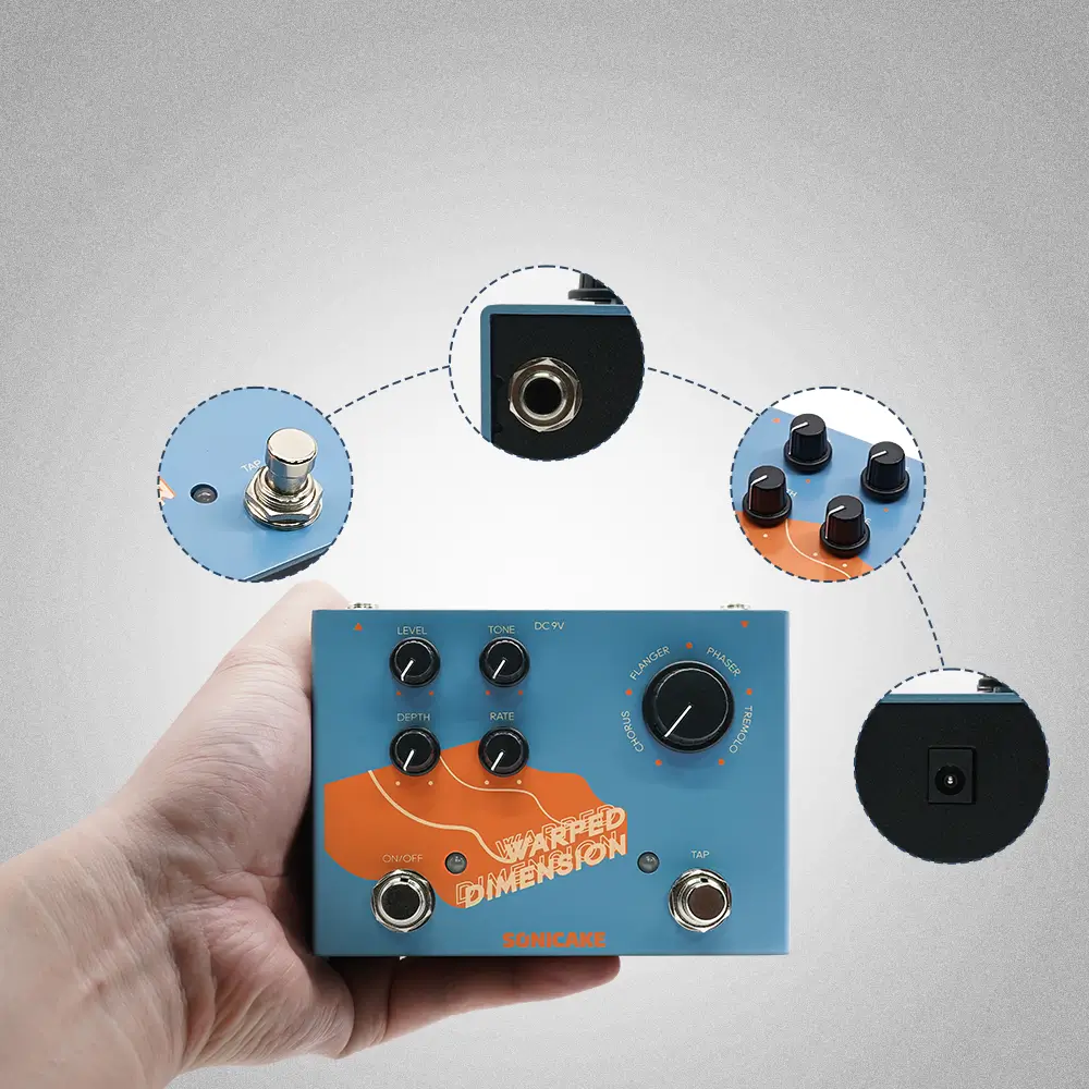 Warped Dimension is a modulation pedal has 4 high quality modulation effects suitable for any music style. Based on the legendary equipment chorus, phase effects, Flanger, tremolo effects reproduce the classic, bring a little bit of warping to the tone. Independent footswitch provides tap tempo function helps during the live show.