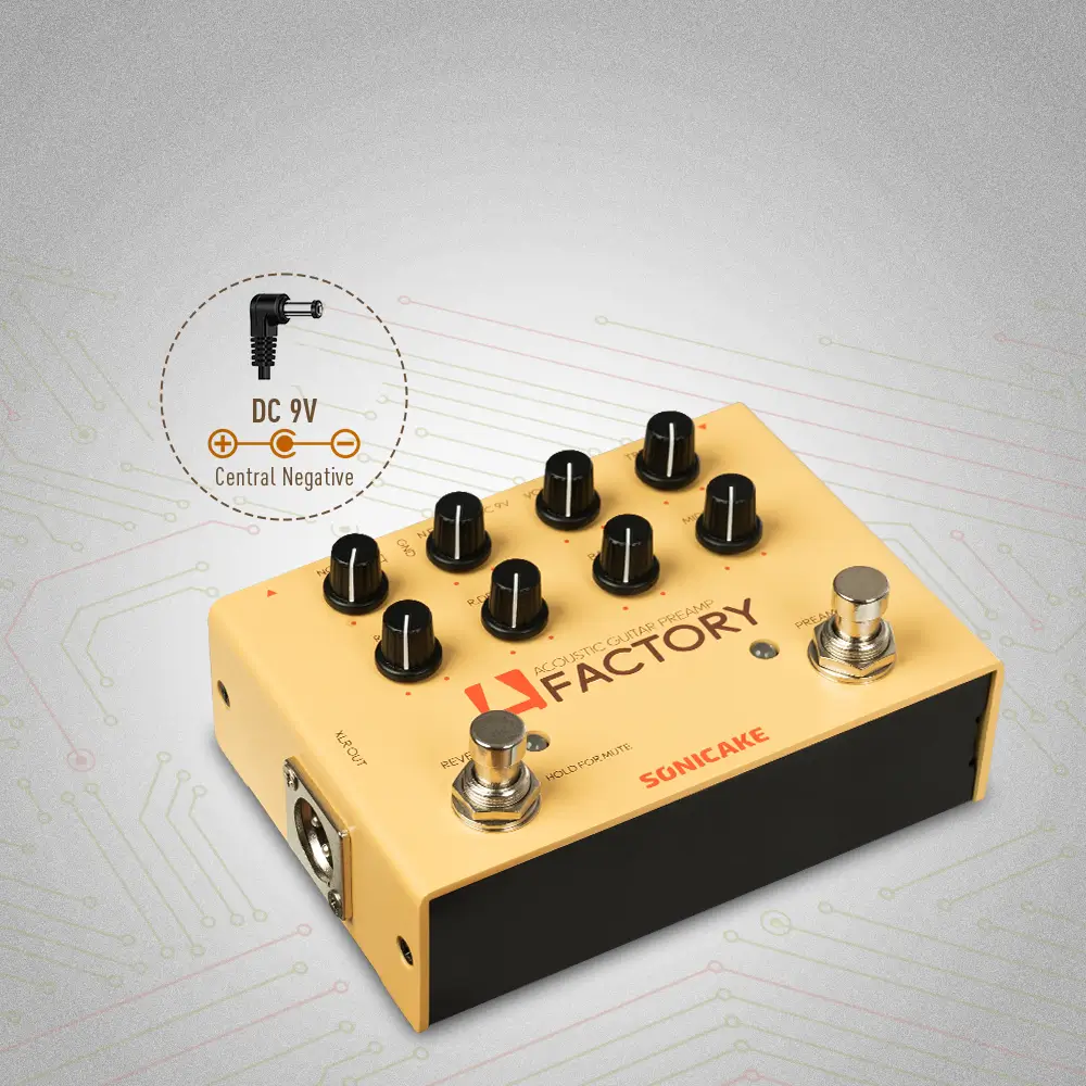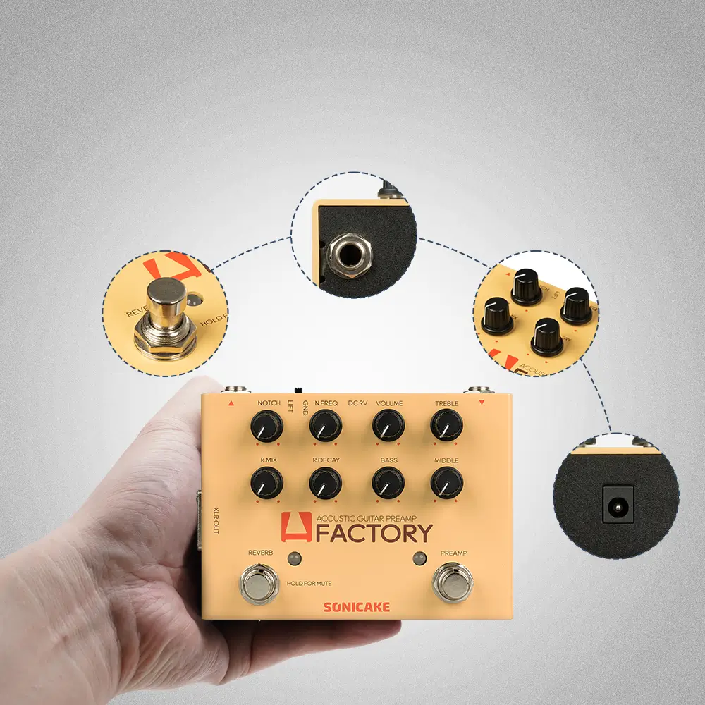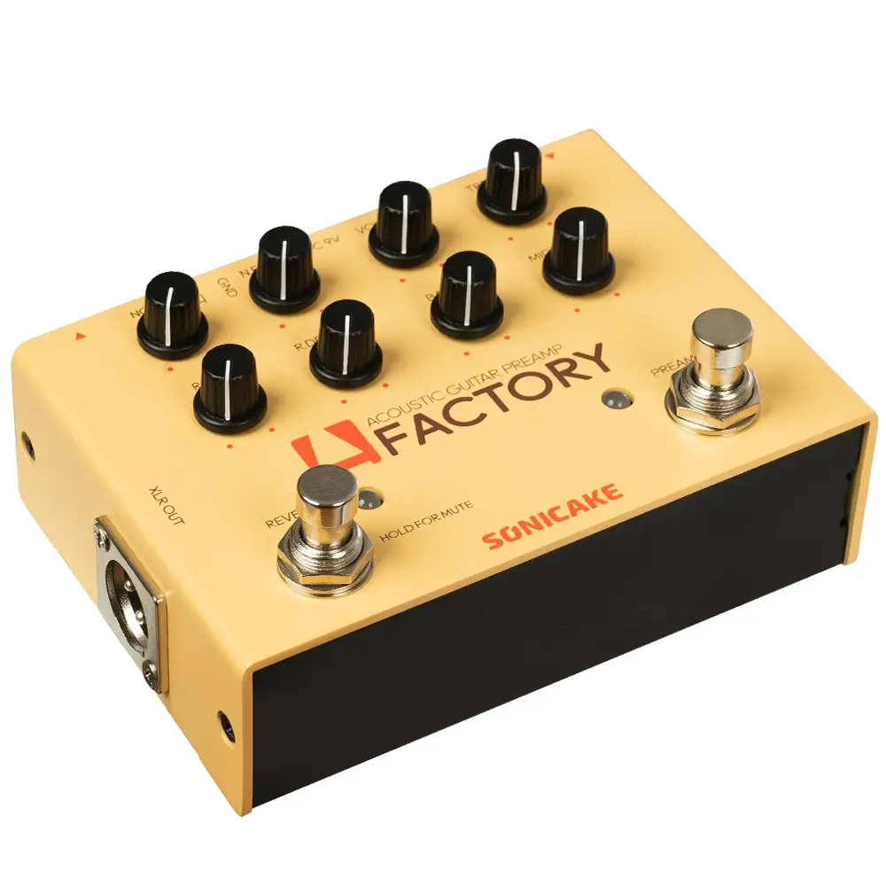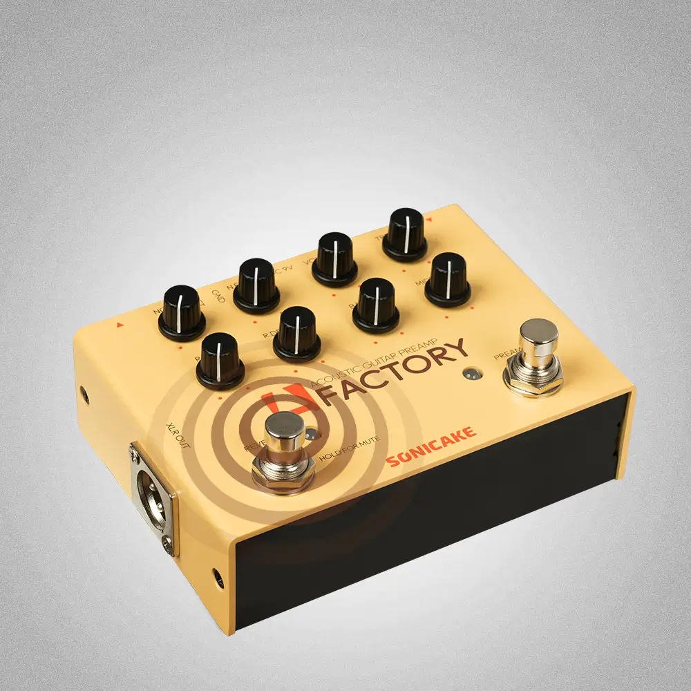 A FACTORY pedal is a powerful acoustic instruments preamp with high impedance input and XLR balanced output. Your acoustic sound (guitar, violin, mandolin, etc.), A Factory will make it greater. Acoustic instruments commonly used effect types and functions are ready. It will provide convenience for your playing.