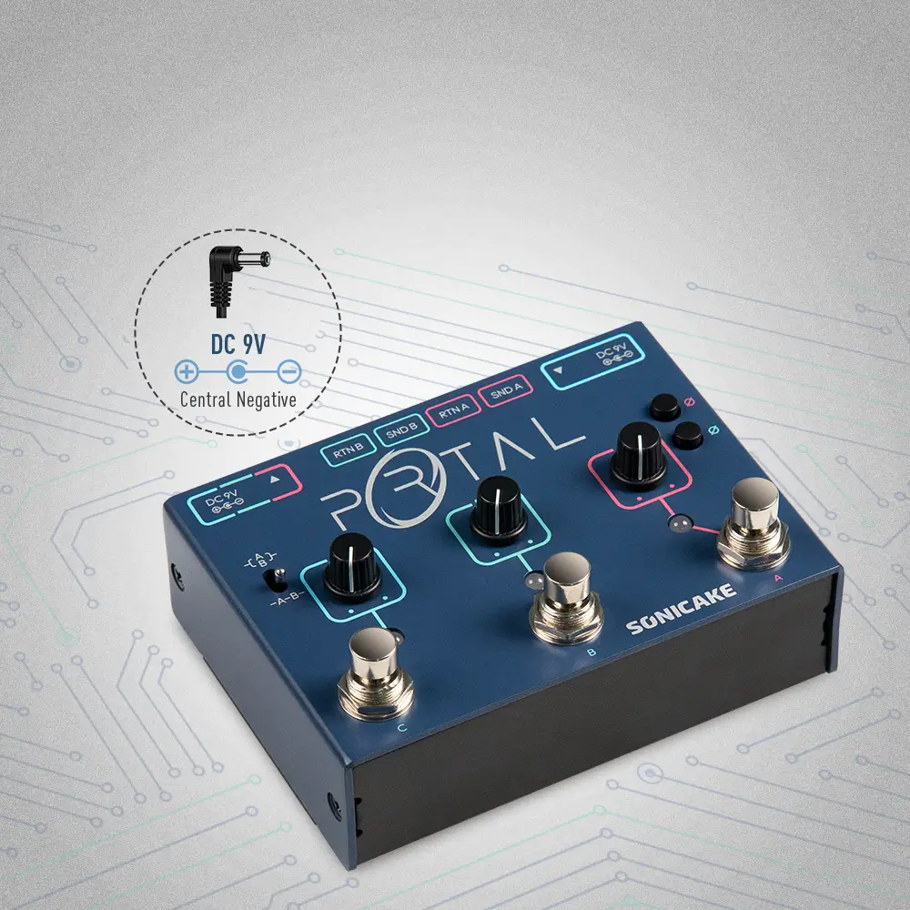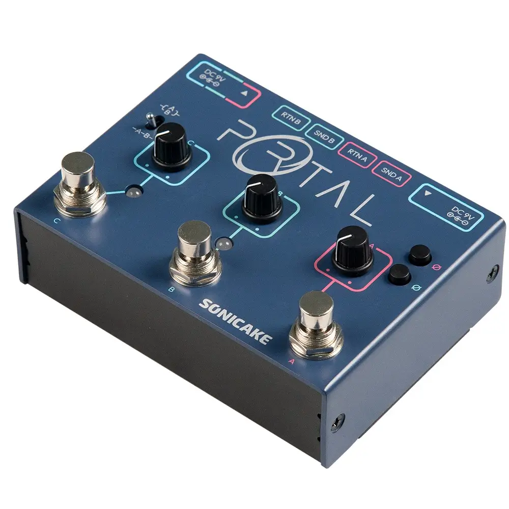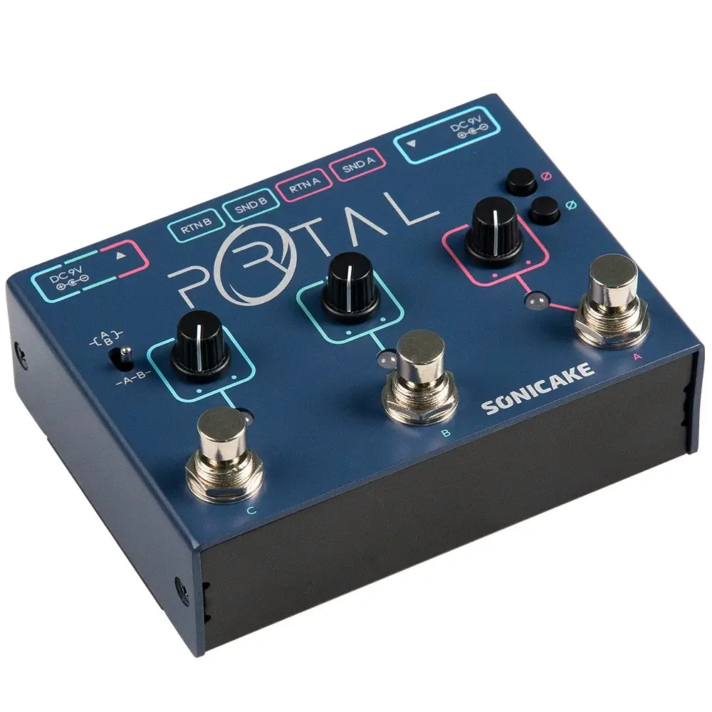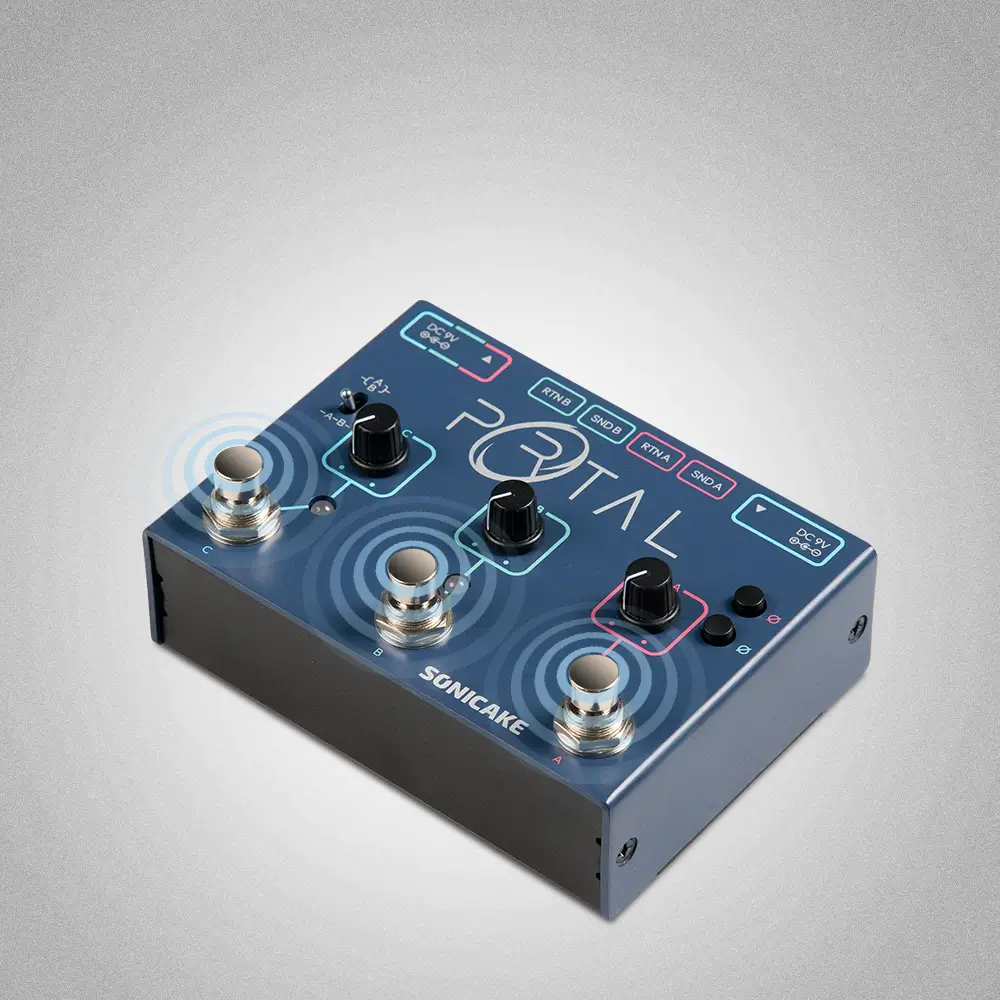 Portal is an active signal mixer with two working modes: parallel and series. In parallel mode, the signal mixer has two send/return loops and one main output, which can combine three independent inputs into one, or can be used as an active ABY as needed. In series mode, A and B are series channels. When the A/B switch is closed, channel A or B is bypassed. When all three switches are closed, it is true bypass.