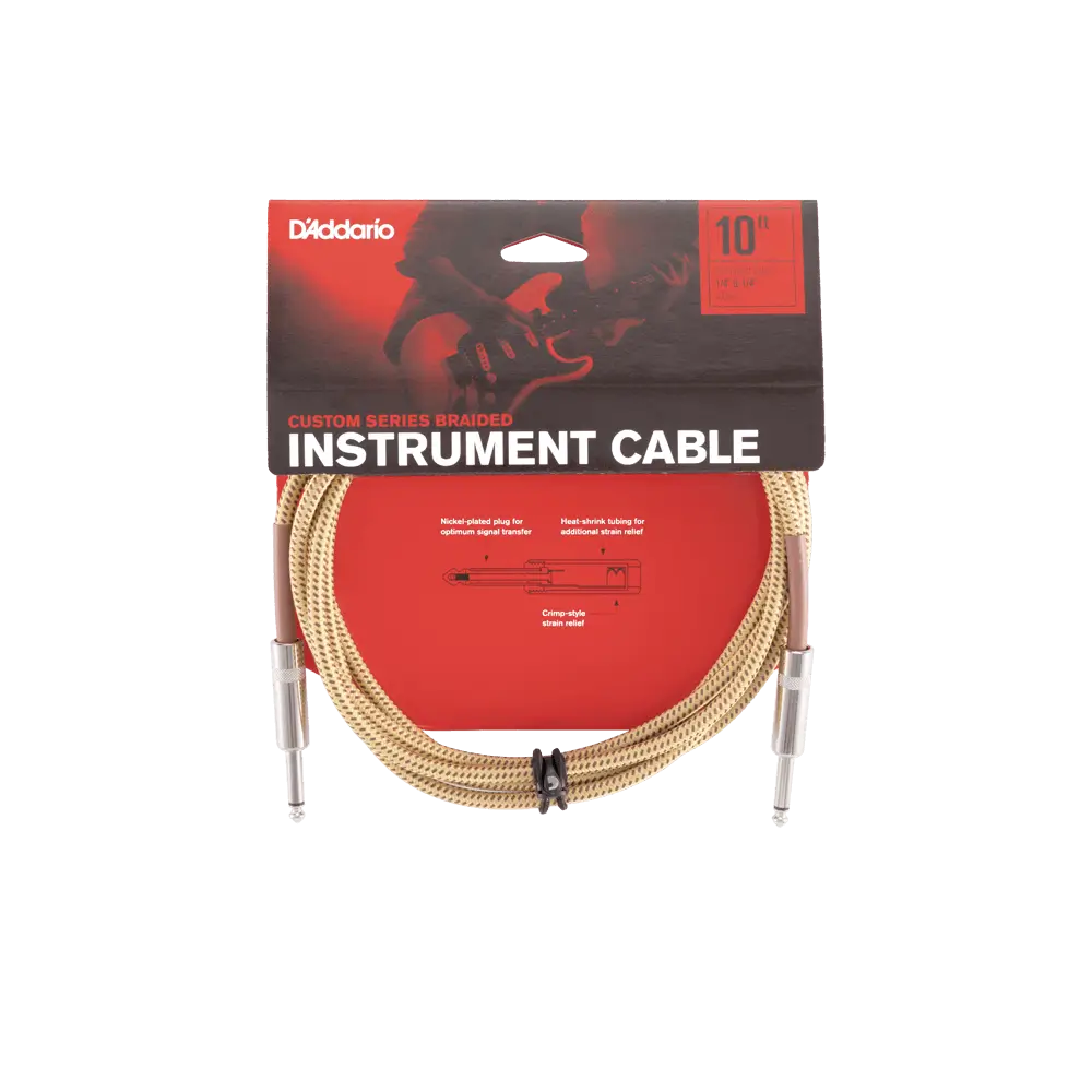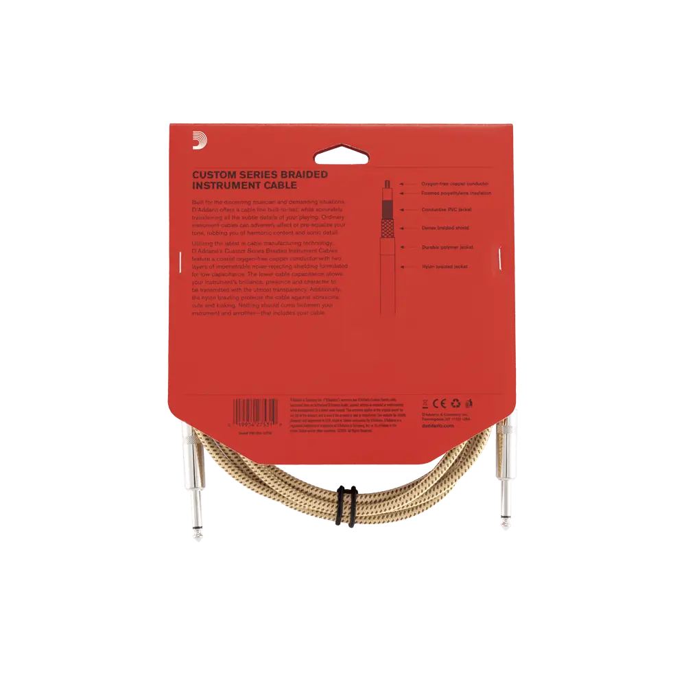 Utilizing the latest in cable manufacturing technology, D’Addario’s Custom Series Braided Instrument Cables feature a coaxial oxygen-free copper conductor with two layers of impenetrable noise-rejecting shielding formulated for low capacitance. The lower cable capacitance allows your instrument’s brilliance, presence and character to be transmitted with the utmost transparency. Additionally, the nylon braiding protects the cable against abrasions, cuts and kinking.