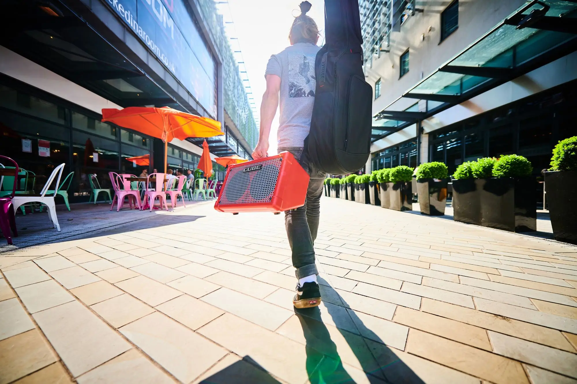 Wherever you perform, high-quality sound with great projection is essential to capture listeners and stand out from the pack. With the portable CUBE Street II by your side, you have the tools you need to deliver your message with confidence in any mobile setting, from musical performances on the street to public speaking events. Evolved from the best-selling Roland CUBE Street—and newly rebranded with the BOSS name—this battery-driven powerhouse provides rich stereo sound for busking and other mobile gigs. Dual channels allow you to plug in mics and instruments and sound great immediately, with no extra gear to carry around. A vocal harmony function, looper, and effects are also on hand to lift your performances and impress the crowd. And with the optional Bluetooth® Audio MIDI Dual Adaptor (BT-DUAL), you can wirelessly stream backing tracks and control CUBE Street II functions from your phone or tablet.