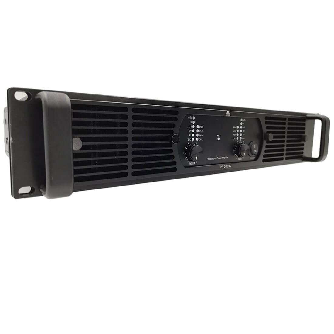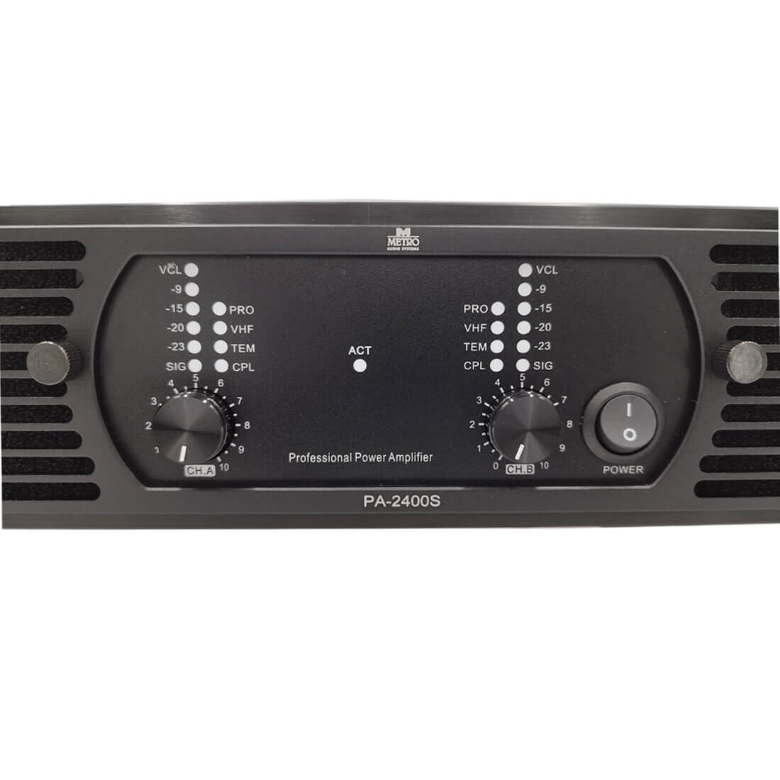 The Metro PA-2400S is a professional power amplifier with 2 channels and 4000w/4Ω power. It features switching mode power supply (SMPS) for absolute reliability. Suitable for hard use and Touring applications. Its transportations is easy due to its low weight (13Κgr).