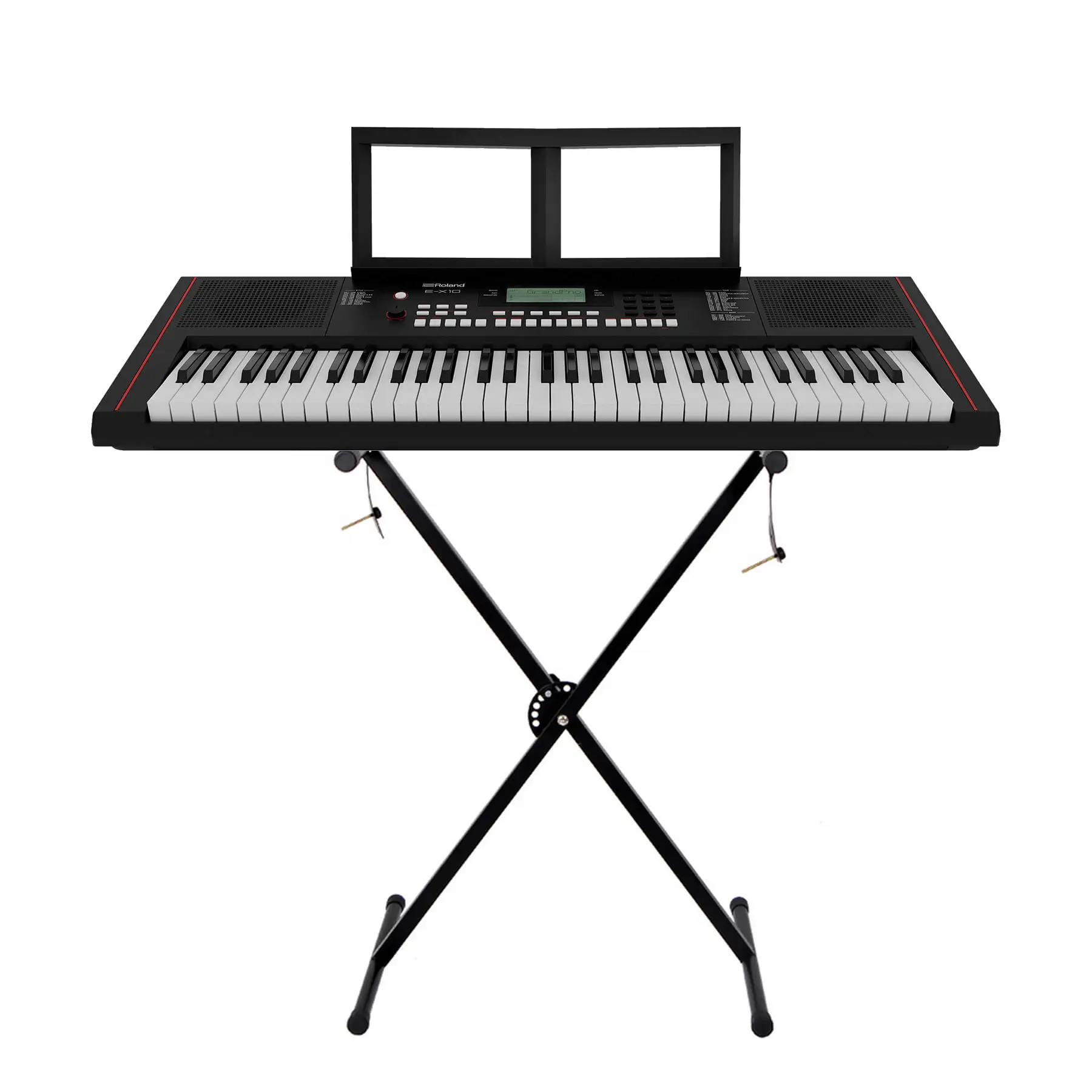 A stylish and affordable portable keyboard with features derived from professional Roland instruments. Launch your musical journey with the E-X10, an inspiring starter keyboard with quality features derived from professional Roland instruments. Have fun as you learn with expressive acoustic pianos and hundreds of other sounds. Command a full band with auto-accompaniment and connect a mic to sing along. Record keyboard performances to check your progress. And play anywhere with the sleek portable design, onboard stereo speaker system, and support for battery-powered operation.