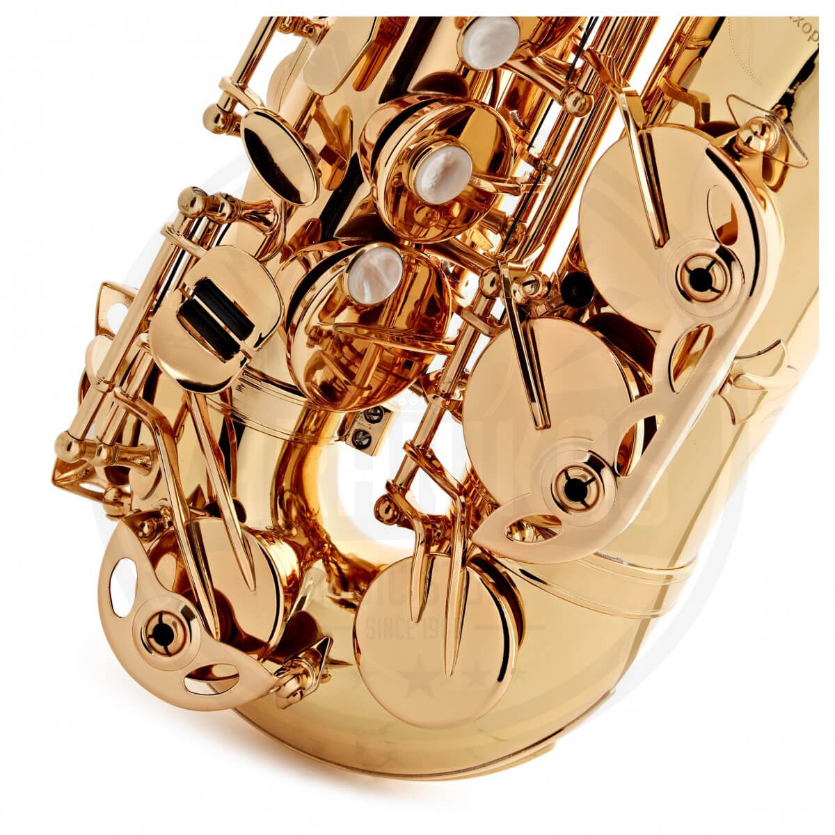 Το Trevor James EVO άλτο σαξόφωνο είναι ιδανικό για προχωρημένους μαθητές και μεσαίου επιπέδου παίκτες που αναζητούν τονικό πλούτο και κορυφαία ευκρίνεια. Το κράμα χαλκού 68% παρέχει έναν γεμάτο, resonant ήχο, ενώ οι χειροποίητες, σφυρήλατες καμπάνες βελτιώνουν την ποιότητα του ήχου. Ο νέος σχεδιασμός του λαιμού εξασφαλίζει καλύτερο τονισμό και απόκριση, διευκολύνοντας το παίξιμο με ακρίβεια. Επιπλέον, τα στοιχεία από φυσικό μαργαριτάρι προσθέτουν μια πινελιά κομψότητας και απαλότητας στην εμπειρία του παιξίματός σας. Η ανθεκτική χρυσή λάκα όχι μόνο φαίνεται εντυπωσιακή, αλλά συμβάλλει και σε έναν πιο έντονο, πλούσιο ήχο.