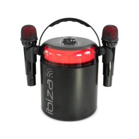 Ibiza KARAHOME-WH, Bluetooth, φορητό, αυτόνομο σύστημα καραόκε με 2 ασύρματα μικρόφωνα και ηχείο 120W τα οποία διαθέτουν επαναφορτιζόμενες μπαταρίες και φορτίζουν μέσω USB-C. Διαθέτει βολική λαβή για την εύκολη μεταφορά του και βάσεις στήριξης για τα δύο μικρόφωνα. Αναπαράγει μουσική από bluetooth, USB, microSD, AUX και Coax και μπορεί να συνδεθεί με τηλεοράσεις, κινητά, ή tablet. Τα μικρόφωνα διαθέτουν λειτουργίες Echo και Reverb καθώς επίσης και 5 εφέ φωνής.