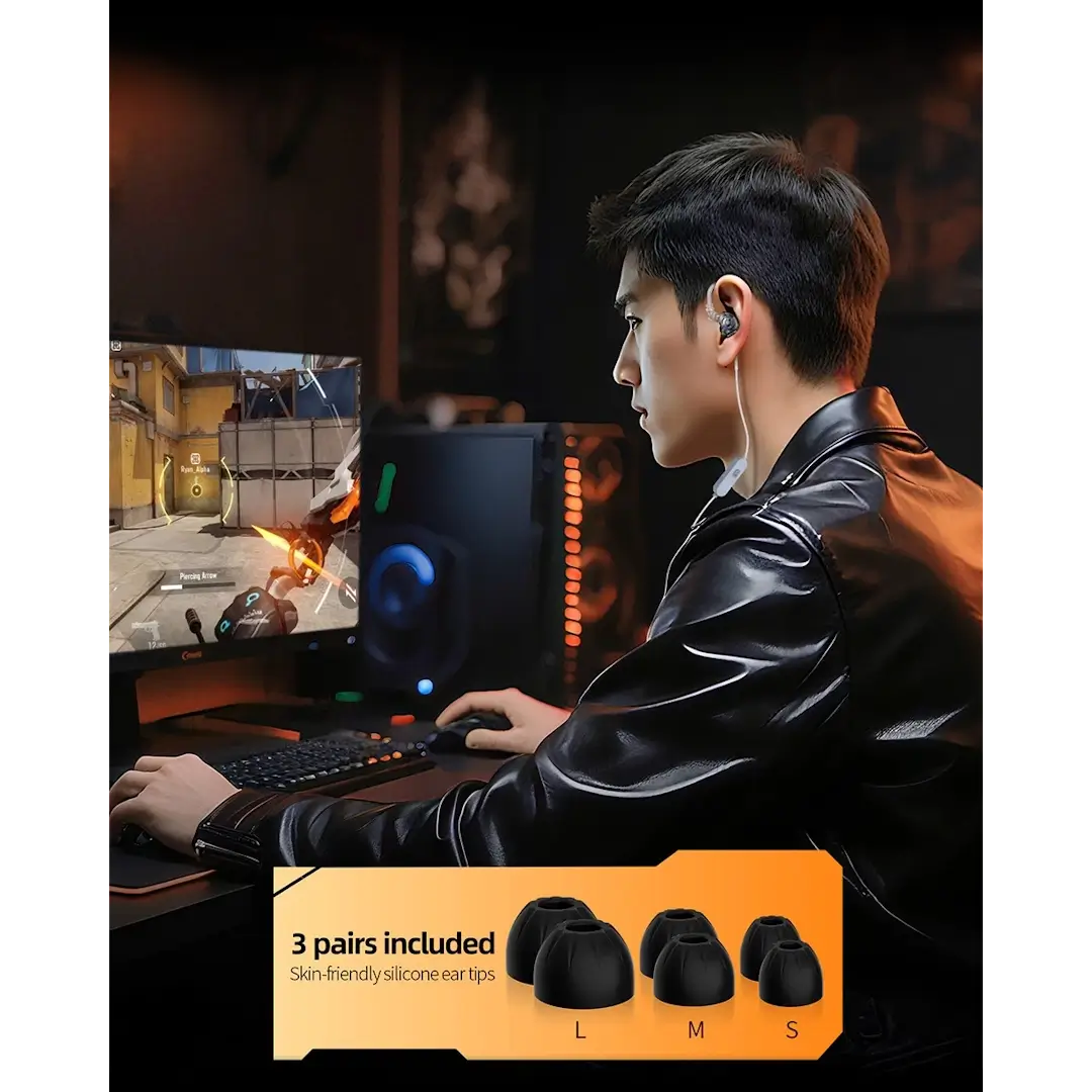 Το KZ Gale επαναπροσδιορίζει τις προσδοκίες των gamers από τα in-ear ακουστικά. Κατασκευασμένο με έναν αποκλειστικό υπερ-γραμμικό δυναμικό οδηγό και σχεδιασμένο με την αποδεδειγμένη ακουστική τεχνογνωσία Hi-Fi της KZ, προσφέρει λεπτομέρεια ήχου, αντίληψη χώρου και καθαρότητα που ξεπερνούν κατά πολύ τα παραδοσιακά ακουστικά gaming. Σχεδιασμένο για gamers που απαιτούν ακρίβεια, άνεση και ευελιξία, το Gale προσφέρει καθηλωτική απόδοση τόσο στα παιχνίδια όσο και στη μουσική — σε ένα συμπαγές, εργονομικό σχεδιασμό, βελτιστοποιημένο για μακρές περιόδους χρήσης. Ο προσαρμοσμένος υπερ-γραμμικός δυναμικός οδηγός παρέχει εξαιρετική καθαρότητα, ακριβή τοποθέτηση και εντυπωσιακές λεπτομέρειες σε όλο το φάσμα συχνοτήτων (10Hz–20kHz). Η εκλεπτυσμένη ακουστική ρύθμιση, βασισμένη σε πάνω από μια δεκαετία εμπειρίας, εξασφαλίζει φυσική ισορροπία και ανάλυση στα χαμηλά, μεσαία και υψηλά. Τα δυναμικά, ελεγχόμενα μπάσα ενισχύουν τις εκρήξεις, τα βήματα και τα εφέ του περιβάλλοντος χωρίς να υπερισχύουν. Ο εργονομικός σχεδιασμός των ακουστικών με καλώδιο που περνά πάνω από το αυτί εξασφαλίζει σταθερή εφαρμογή χωρίς κόπωση κατά τη διάρκεια παρατεταμένου παιχνιδιού. Περιλαμβάνει τρία μεγέθη μαλακών ακουστικών από σιλικόνη για βέλτιστη απομόνωση και εξατομικευμένη άνεση. Η έκδοση USB-C DSP περιλαμβάνει τέσσερις ενσωματωμένες λειτουργίες EQ — από ισορροπημένη ακρόαση μουσικής έως προφίλ παιχνιδιών που ενισχύουν τους ήχους των βημάτων.