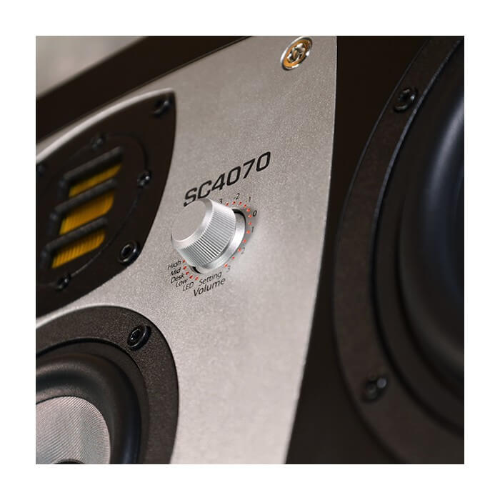 Ένα νέο επίπεδο ισορροπίας ήχου, ακρίβειας και εκπληκτικής αναπαραγωγής των χαμηλών συχνοτήτων, είναι αυτό που προσφέρει το SC4070 με απόλυτη ευκολία. Το αυτοενισχυόμενο ηχείο studio monitor SC4070 αντικαθιστά το SC407, αλλά συνεχίζει να βασίζεται στον προκάτοχό του, επαναπροσδιορίζοντας τα αναμενόμενα επίπεδα ηχητικής απόδοσης και ακρίβειας για αυτό το πραγματικά εξαιρετικό σύστημα studio monitor χωρίς συμβιβασμούς. Το SC4070 διαθέτει ένα προηγμένο τμήμα tweeter/mid range και ενισχύει την ικανότητα αναπαραγωγής χαμηλών συχνοτήτων με δύο woofer 6,5" συνδεδεμένα σε μια πολύ ισχυρή συστοιχία ενισχυτών. Τα διπλά woofer επιτρέπουν τη μείωση της παραμόρφωσης ακόμη και σε υψηλό SPL και προσφέρουν μια απίστευτη σφιχτή και ομοιογενή αναπαραγωγή μπάσων και πολύ γραμμική συνολική απόκριση. Αυτό το studio monitor 4 δρόμων, είναι συμμετρικά σχεδιασμένο. Η εντυπωσιακή κεντρική και τεράστια ασημένια πλάκα αλουμινίου είναι κάτι περισσότερο από ένα ελκυστικό χαρακτηριστικό του σχεδιασμού. Δεν στεγάζει μόνο το μεσαίο woofer και το tweeter AMT, αλλά περιστρέφεται για να κάνει το ηχείο εξίσου κατάλληλο για κάθετη ή οριζόντια τοποθέτηση. Τα φίλτρα προσαρμογής δωματίου και ο έλεγχος έντασης είναι προσβάσιμα μέσω του κουμπιού SMART με δακτύλιο LED για ένδειξη όλων των ρυθμίσεων με απόλυτη ακρίβεια. Ένα εξελιγμένο κουτί ολοκληρώνει την κομψή σχεδίαση. Η λοξή και εξαιρετικά άκαμπτη μπροστινή πλάκα μειώνει τους ανεπιθύμητους συντονισμούς και τη διάθλαση.