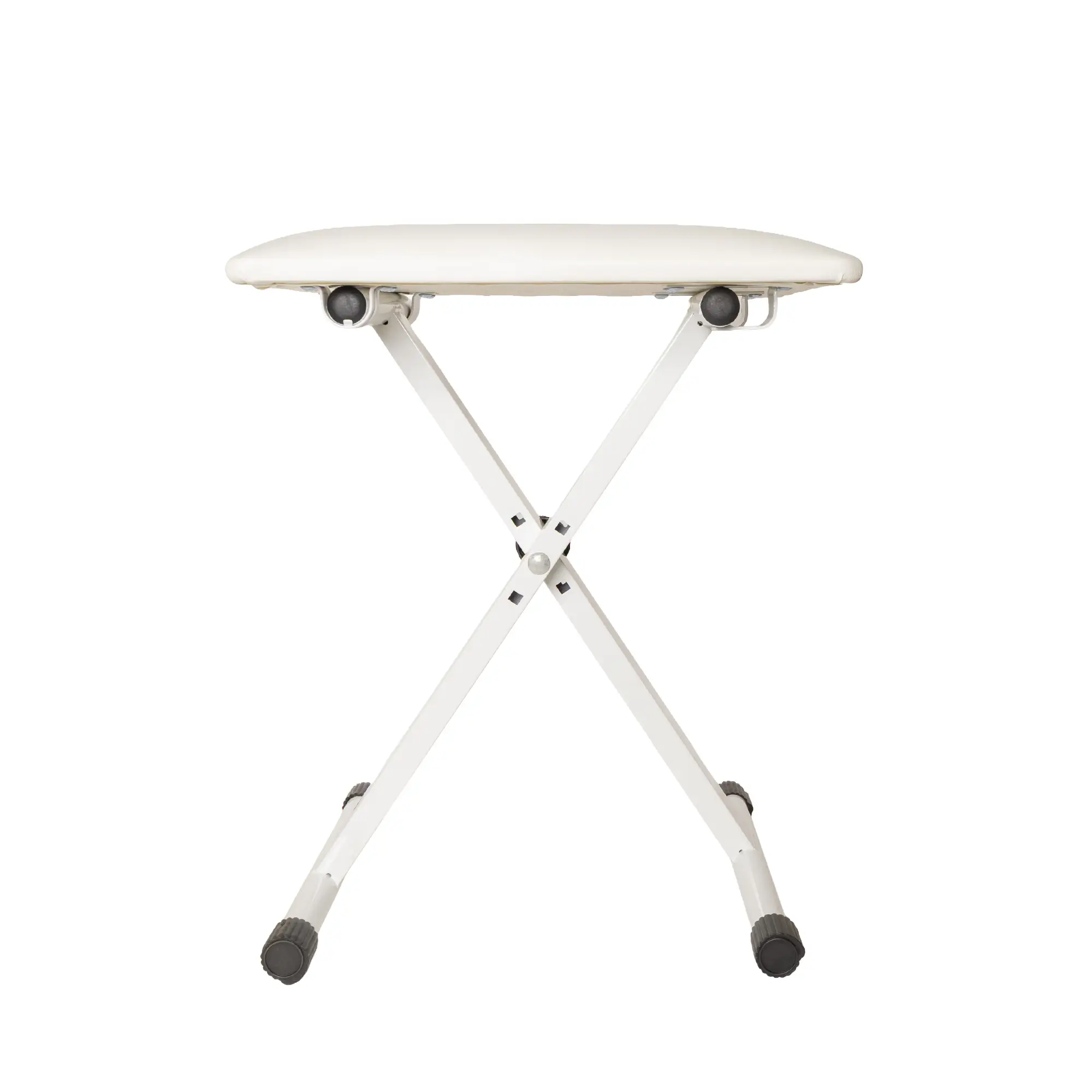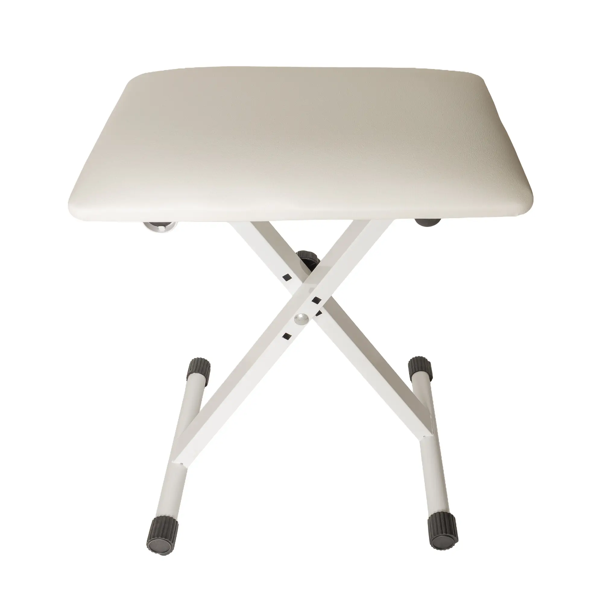 Υψηλής ποιότητας βάση για πλήκτρα στιβαρής, μασίφ κατασκευής με διπλό πόδι (τύπου X) σε λευκό χρώμα. Είναι ρυθμιζόμενη σε ύψος, διαθέτει εργονομική λαβή για εύκολο καθορισμό του ύψους της, αντέχει έως 65 kg βάρους μουσικά όργανα και έχει μακράς διάρκειας, αντιολισθητικά καπάκια στις άκρες.